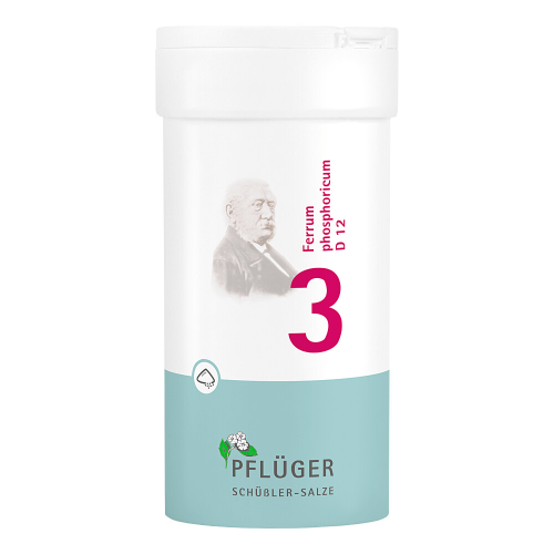 Biochemie Pflüger® Nr. 3 Ferrum phosphoricum D12.Zusammensetzung: 100 g/250 g Verreibung enthalten: Wirkstoff: Ferrum phosphoricum Trit. D12 100 g/250 g. Registriertes homöopathisches Arzneimittel, daher ohne Angabe einer therapeutischen Indikation. Gegenanzeigen/Nebenwirkungen: keine bekannt. Zu Risiken und Nebenwirkungen lesen Sie die Packungsbeilage und fragen Sie Ihre Ärztin, Ihren Arzt oder in Ihrer Apotheke. Arzneimittel enthält Lactose. Homöopathisches Laboratorium Alexander Pflüger GmbH & Co. KG · 33378 Rheda-Wiedenbrück · info@pflueger.de · www.pflueger.de