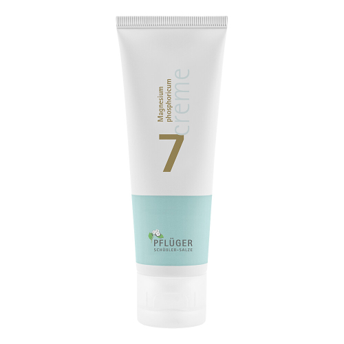 Biochemie Pflüger® Creme Nr. 7 Magnesium phosphoricumWirkstoff: Magnesium phosphoricum Trit. D4 0,1 g. Registriertes homöopathisches Arzneimittel, daher ohne Angabe einer therapeutischen Indikation. Gegenanzeigen: Überempfindlichkeit (Allergie) gegen den Wirkstoff oder einen der sonstigen Bestandteile, Anwendung im und am Auge, Anwendung auf den Schleimhäuten, Anwendung auf geschädigter Haut, Kinder unter 4 Jahren. Nebenwirkungen: keine bekannt. Creme enthält Propylenglycol und Cetylstearylalkohol. Packungsbeilage beachten. Zu Risiken und Nebenwirkungen lesen Sie die Packungsbeilage und fragen Sie Ihre Ärztin, Ihren Arzt oder in Ihrer Apotheke. Homöopathisches Laboratorium Alexander Pflüger GmbH & Co. KG · 33378 Rheda-Wiedenbrück · info@pflueger.de · www.pflueger.de