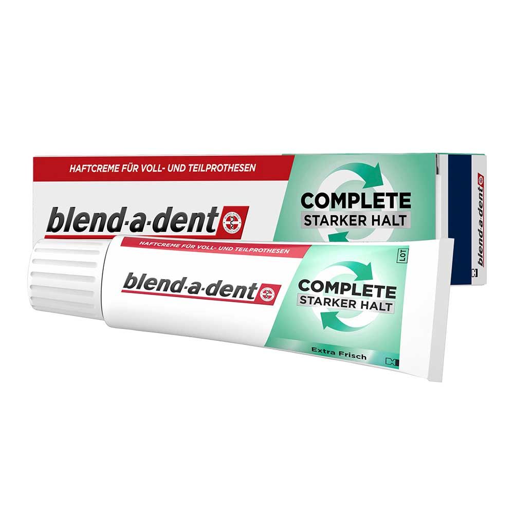 Blend-a-dent Complete extra frisch bietet den ganzen Tag über einen starken Halt und Tragekomfort. Diese Haftcreme ist für Voll- und Teilprothesen geeignet.