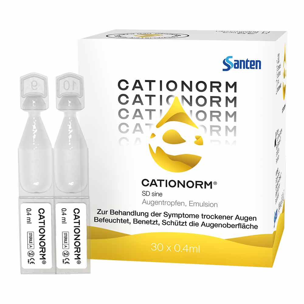 CATIONORM® Augentropfen werden zur Befeuchtung, zum Schutz bei trockenen Augen und zur Verringerung der Symptomatik wie Brennen, Tränen, Stechen, Rötungen und Sandkorngefühl, angewendet.
