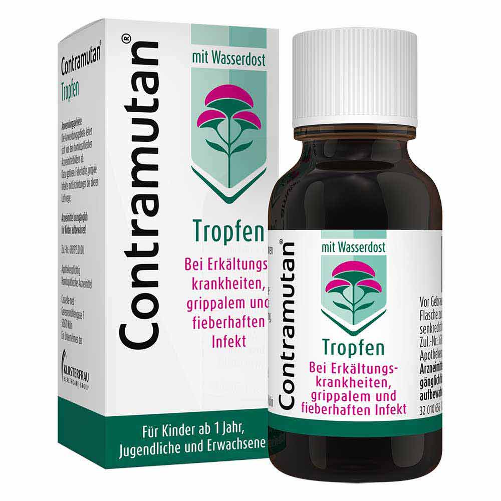 Contramutan® Tropfen. Anwendungsgebiete: Die Anwendungsgebiete leiten sich von den homöopathischen Arzneimittelbildern ab. Dazu gehören: Fieberhafte, grippale Infekte mit Entzündungen der oberen Luftwege. Warnhinweis: Enthält 33,4 Vol.-% Alkohol. Packungsbeilage beachten! Zu Risiken und Nebenwirkungen lesen Sie die Packungsbeilage und fragen Sie Ihre Ärztin, Ihren Arzt oder in Ihrer Apotheke.