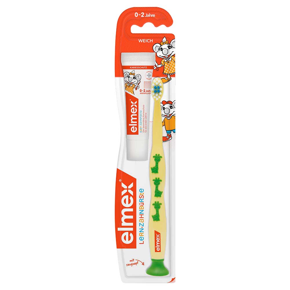 Die Elmex Lern-Zahnbürste 0-2 Jahre weich Kinder-Zahnbürste wurde speziell für die schonende Reinigung und Pflege der ersten Zähne entwickelt.