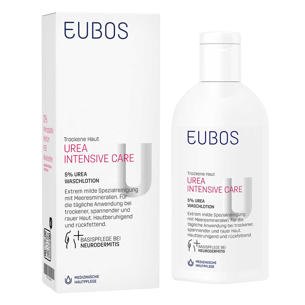 Trockene Haut weist oft einen Mangel an Lipiden und insbesondere an Urea – einem physiologischen, natürlichen Feuchthaltefaktor – auf. Als Folge kann es zum weiteren Austrocknen der oberen Hautschicht kommen. EUBOS 5 % UREA WASCHLOTION ist aufgrund seiner ausgewählten, besonders milden Kombination waschaktiver Substanzen aus Amphotensid, Aminosäurederivaten und Glucosiden eine sehr schonende aber gründliche Körperreinigung. Mit Urea, Milchsäure und Glycerin schützt sie nachweislich vor Austrocknung. Hautverwandte pflanzliche Lipide wirken rückfettend und pflegend. Oligofructose aus Chicorée und Meeresmineralien helfen, eventuellen Juckreiz zu mindern.