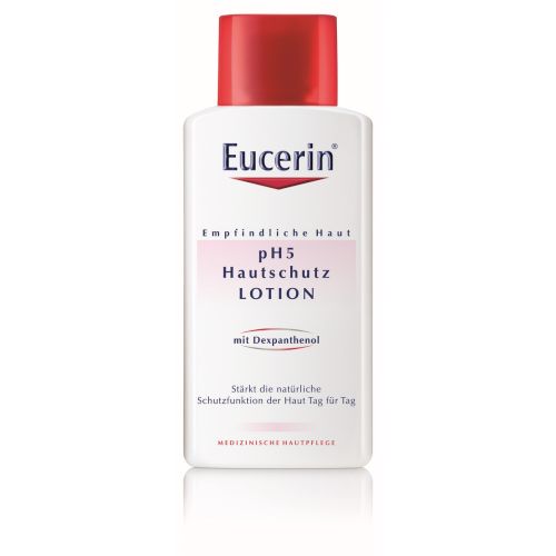 Die Eucerin pH5 Hautschutz Lotion spendet bis zu 24 Stunden Feuchtigkeit, verbessert die Hautelastizität und stärkt die Widerstandskraft empfindlicher Haut. Die Formel enthält 5% Dexpanthenol, einen Wirkstoff, der die Hautregeneration anregt und die Schutzbarriere der Haut Tag für Tag stärkt.