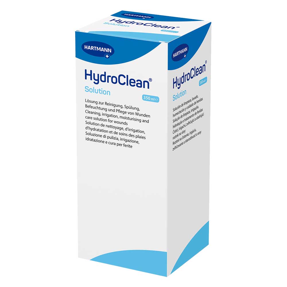 HydroClean Solution Spüllösung ist eine gebrauchsfertige Wundspüllösung zur mechanischen Reinigung von akuten, chronischen und infizierten Wunden. Sie erleichtert das Entfernen verklebter Verbände und bereitet die Wunde optimal auf die weitere Versorgung vor. Die antiseptische Wirkung sorgt für eine keimarme Umgebung und unterstützt die Wundheilung – besonders geeignet für empfindliche Haut und schmerzempfindliche Patienten.