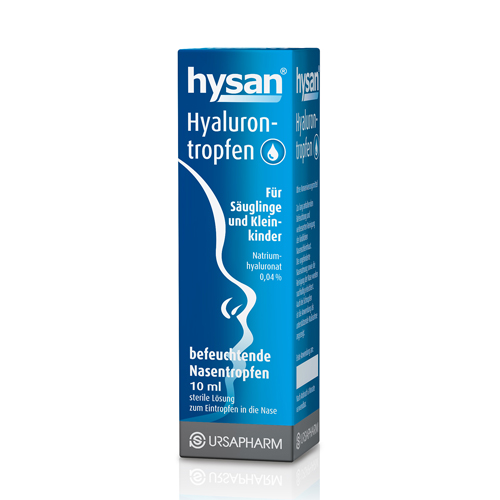 Hyaluronsäure. Diese körpereigene Substanz kann immense Mengen an Wasser binden und haftet hervorragend an der Nasenschleimhaut. So wird eine effektive und langanhaltende Befeuchtung sichergestellt. Die in hysan® Hyaluronspray enthaltene Hyaluronsäure schützt große Nasen. In hysan® Hyalurontropfen kümmert sie sich speziell um kleine Babynasen.