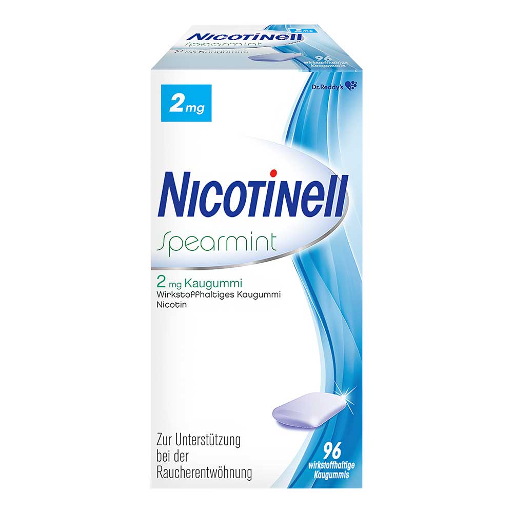 NICOTINELL Spearmint 2 mg Kaugummi. Wirkstoff: Nicotin. Anwendungsgebiete: Zur Linderung von Nicotinentzugssymptomen, zur Unterstützung der Raucherentwöhnung bei Nicotinabhängigkeit. Raucher, die zurzeit nicht in der Lage sind, sofort mit dem Rauchen vollständig aufzuhören, können NICOTINELL Kaugummi zunächst zur Verringerung ihres Zigarettenkonsums (Rauchreduktion) verwenden, um auf diesem Wege den Einstieg in den Rauchausstieg zu erreichen. Eine Beratung und Betreuung des Patienten erhöhen in der Regel die Erfolgsraten. Warnhinweis: Enthält Levomethol, Sorbitol (Ph.Eur.), Mannitol (Ph.Eur.), Xylitol, Natriumverbindungen und Butylhydroxytoluol (Ph.Eur.). Apothekenpflichtig. Stand: 03/2019. Zu Risiken und Nebenwirkungen lesen Sie die Packungsbeilage und fragen Sie Ihre Ärztin, Ihren Arzt oder in Ihrer Apotheke.