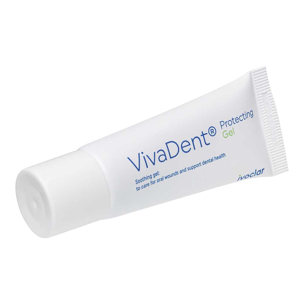 Das VivaDent Protecting Gel ist ein Mundpflege-Gel und bietet nicht nur Schutz vor Karies und Entzündungen, sondern sorgt auch für eine sanfte Pflege von gereiztem Zahnfleisch und empfindlichem Gewebe rund um Kronen, Brücken und Implantate.