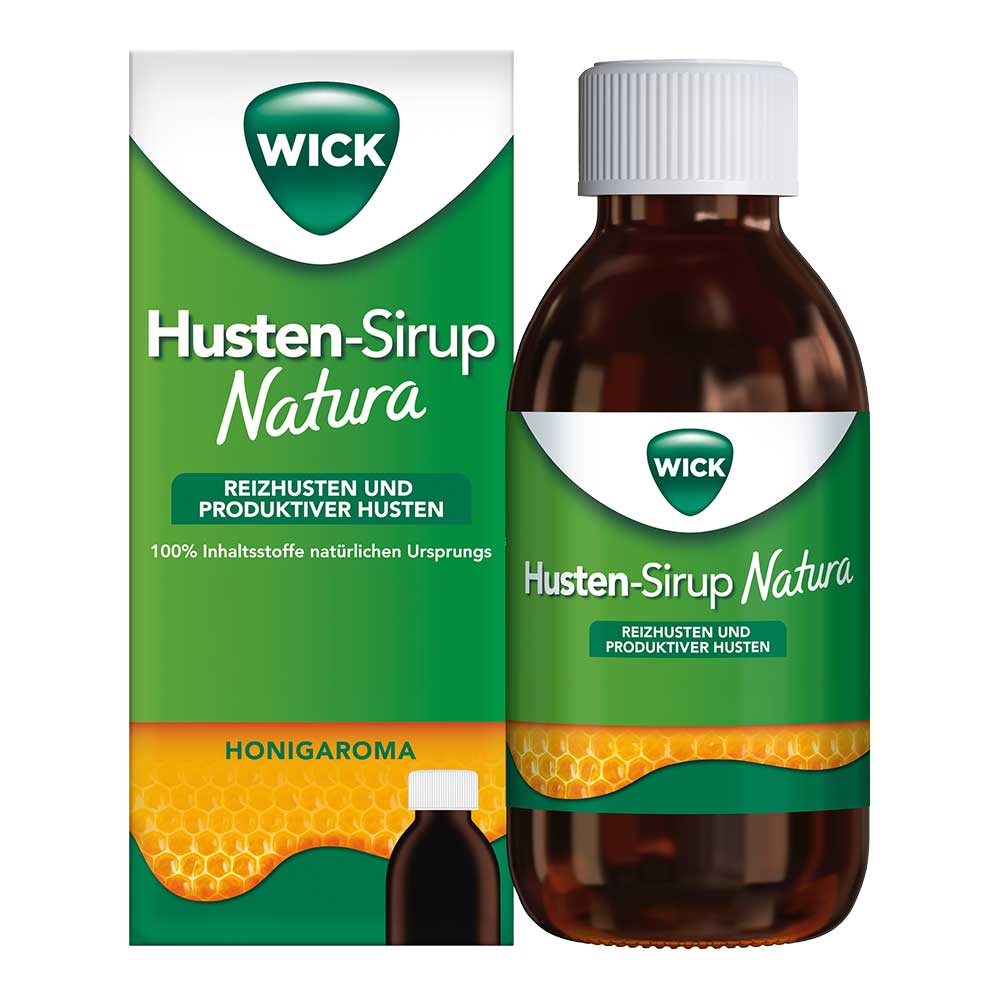 Egal, ob Sie mit einem hartnäckigen Reizhusten oder mit den Unannehmlichkeiten eines produktiven Hustens zu kämpfen haben, WICK Husten-Sirup Natura bietet Ihnen effektive Linderung bei Reizhusten und bei produktivem Husten. Er wirkt befeuchtend, schleimlösend um das Abhusten zu erleichtern und produktiven Husten zu lindern, bildet einen Schutzfilm auf der gereizten Rachenschleimhaut bei Reizhusten und trägt damit zur Erleichterung und zum allgemeinen Wohlbefinden bei.